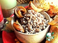 На гарнир у нас была гречка..., хорошо пошла с запечённым луком! |