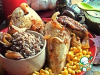 Вот так выглядит курочка через полчаса, проведённого в духовке. |