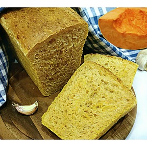 В теплую воду добавить дрожжи и дать им распуститься. Далее добавить соль, сахар, ароматное масло и тыквенное пюре. Затем добавить 2/3 части муки и начать замешивать тесто. Я в тесто добавляю дополнительно 1ч. л. муки пищевой из жмыха семян расторопши, с ней получается хлебушек полезнее. Остальную часть муки вводим постепенно, т. к. может понадобиться больше или меньше муки, в зависимости от сочности тыквы и от самой муки. Мне хватило 360г. |