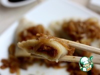 Описание: Хочу предложить Вам вареники на заварном тесте и с пикантной начинкой. Конечно, шитаки - специфический гриб, и он придаёт пикантность, но если Вы замените его на обычные сушёные грибы, будет не менее вкусно. Заходите и угощайтесь