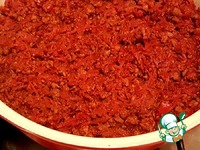 Добавить в сковороду прокрученные овощи и томатную пасту, перемешать и тушить под крышкой до готовности около 20 минут. Попробовать на соль, перец и откорректировать на свой вкус. |
