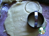 Разогреть духовку до 180 градусов. Раскатать тесто слоем примерно в один см и небольшой вырубкой вырезать четное количество кружочков. |