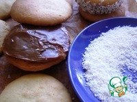 Остудить на листе до чуть теплого состояния и соединить попарно слоем вареной сгущенки, смазывая и края печенья. Прокатать края печенья в кокосовой стружке и дать пропитаться с часик |