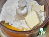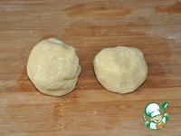 Тесто делим на две части (одна чуть побольше), кладём в пакет и отправляем в холодильник на 30 минут. |