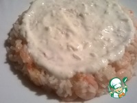 На тарелку выложить рис с креветками. Полить 1/2 соуса |