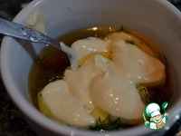Шпроты открыть, слить масло в отдельную ёмкость. Добавить натертый чеснок (или через пресс), нарезанный укроп. |