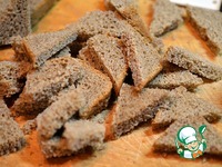 Хлеб нарезать треугольниками или полосочками. И я оставила большие кусочки хлеба для индивидуальной подачи. |