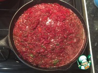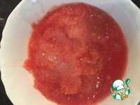В помидорную массу добавляем 2 чайные ложки сахара и перемешиваем. Оставляем настояться, пока говядина варится. |