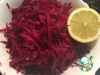 Затем трем на терке и добавляем сок 1 лимона. Все перемешиваем и ставим в сторону. |