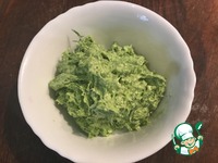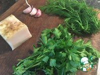 Далее берём 80 г сала, петрушки, укропа и 3 зубчика чеснока. Все измельчаем миксером. |