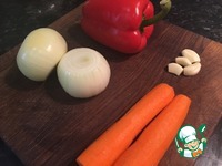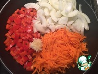 На крупной тёрке трём морковь, режем перчик, лук и чеснок |