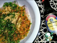 К филе добавляются нарезанный лук, имбирь, вино, масло, соевый соус. Филе оставляется на час для маринования. Можно не убирать в холодильник. |