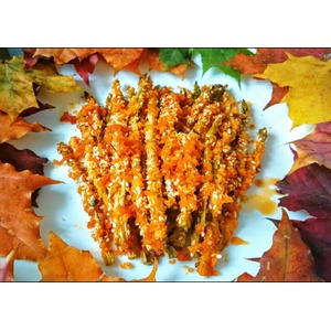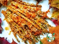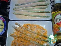 Описание: Это блюдо - начало моей, кажется, долгой дружбы со спаржей. И еще более долгой обещает быть моя дружба с этой безумно вкусной панировкой. Думаю, именно в ней все дело. С такой панировкой будет прекрасно получаться и курица, и рыба, и другие овощи. Даже так скажу, эту панировку можно есть просто так - как бы странно это не прозвучало - и будет вкусно) А в процессе приготовления по кухне будет разноситься аромат, характерный для суши и роллов)
