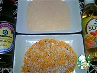 В одной емкости необходимо смешать майонез, уксус, соевый соус, тертый на мелкой терке имбирь. В другой - панировочные сухари и кунжут. |
