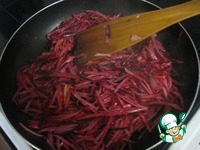 Разогреваем масло в сковороде, добавляем лук и через минуту картошку со свеклой, посыпаем специями и солим пол вкусу |