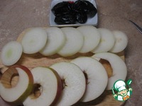 Лук чистим, яблоко моем, удаляем сердцевину, чернослив моем и сушим. Лук и яблоко режем кружками. |