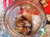 На дно подходящей банки укладываем слой селедки, засыпаем чайную ложку сахара и полчайной ложки молотого черного перца |