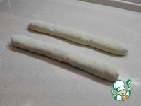 После завершения программы "Тесто" хлебопечки вынимаем тесто на подготовленный стол. Разделяем тесто на две равные половины. |