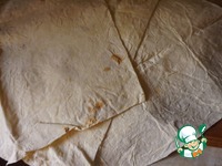 Традиционно для энчиладос берут мексиканские кукурузные лепешки - тортильяс, но т. к. у меня фантазия не тему - берем армянский лаваш. Лаваши разрезаем на квадраты по 3-4 шт. каждый |