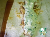 Сверху нашу «мексиканскую шаварму» и вторую половину соуса. Отправляем в духовку на 15 минут при 180 градусах. |