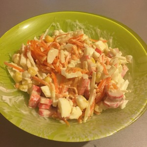 Описание: С детства обожаю салат с крабовыми палочками, готовлю его по будням и на праздник.