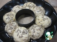 Затем формуем такие же булочки из другого теста и выкладываем их между первыми булочками |