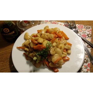 Фасоль заранее замочить и отварить. Морковь отварить и порезать соломкой. Корень сельдерея натереть на мелкой терке. Яблоко очистить и порезать тонкими дольками. |