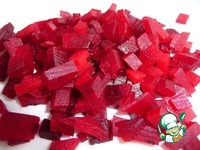 Порезать свеклу небольшими кусочками, выложить на сервировочную тарелку. |