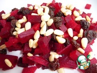 Описание: Для любителей свеклы предлагаю очередной салат. Салат готовится из печеной свеклы с добавлением изюма, кедровых орешков и сыра. Заправляется салат оливковым маслом и праванскими травами.