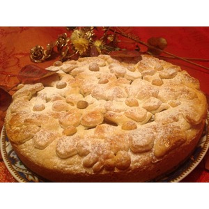 Бортики из теста пригнуть на яблочную начинку. Отложенную 1/3 теста раскатать и вырубить формочкой цветы. Разложить поверх яблок. Смазать желтком. Выпекать 60 минут при 180 С. |