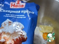 Мягкое масло, сахарную пудру и желтки растереть. Добавить сметану, перемешать. Разрыхлитель высыпать в муку и просеять муку в масляную массу, замесить тесто. |