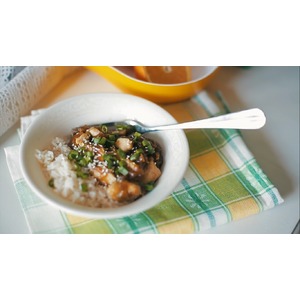 Подавайте с рисом, присыпав обжаренным кунжутом и мелко нарезанным зеленым луком