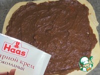 Тесто раскатываем и смазываем шоколадным заварным кремом. |
