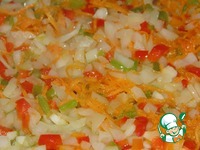 Лук репчатый, болгарский перец (у меня замороженный) мелко порезать, морковь натереть на мелкой терке. Все овощи потушить на растительном масле. |