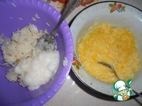 Каждый пакетик отварного риса высыпать отдельно, дать остыть. В одну часть ввести взбитые желтки с молотый перцем, во вторую-взбитые белки. Аккуратно перемешать. |