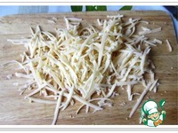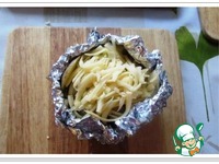 Снимаем "крышечку", кладем её рядом с картофелиной, посыпаем картошину половиной натертого сыра, обжимаем фольгу в виде корзинки и ставим в духовку ещё на 5-7 минут |
