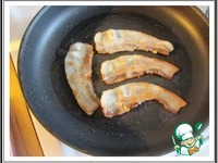 Бекон кладем на сухую горячую сковороду и зажариваем с двух сторон до корочки |