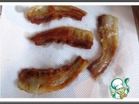 Выкладываем горячий жареный бекон на бумажную салфетку и остужаем |