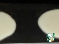 Переворачиваем пергамент рисунком вниз в форму и ложкой выкладываем чайной ложкой на кружок тесто, так чтобы оно не растеклось за пределы круга. |