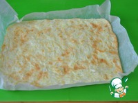 Достаём из духовки готовый полуфабрикат рулета, отделяем от бумаги. |