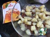 Сверху выложите нарезанную маленькими кусочками грушу. |