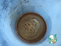 Сначала приготовимся бисквит: залейте какао и кофе крутым кипятком и хорошо перемешайте до полного растворения. |