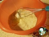 Для опары смешать все ингредиенты и оставить на 20 минут. Должна образоваться пышная шапочка. К опаре добавить яйцо, сахар и ванилин, перемешать венчиком. |