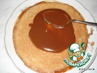 Когда масса остыла, приступаем к сборке пирога. Блины кладем друг на друга, поливая каждый ирисковой массой. Лучше всего использовать при этом разъемную форму. |
