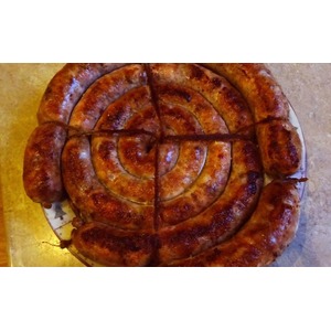 Колбасу скручиваем спиралью и перевязываем шпагатом.