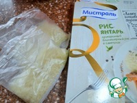 В это время отварить рис. Очень удобно использовать пакетированный рис от ТМ Мистраль. Сегодня рис Янтарь. Согласно инструкции варить 30 минут. |