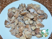 Также необходимо пожарить грибы. Я использую замороженные подберезовики. |