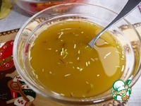 В чашечку (баночку) влить масло, уксус, взбить венчиком (вилкой, блендером) |