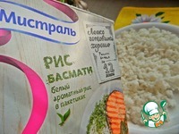 Пока жарится мясо, ставим вариться рис от "Мистраль" басмати по пакетику на человека. Готовится рис 12 минут. |