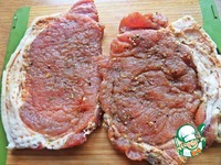 На одну порцию берём один кусок свинины размером с ладонь, отбиваем. |